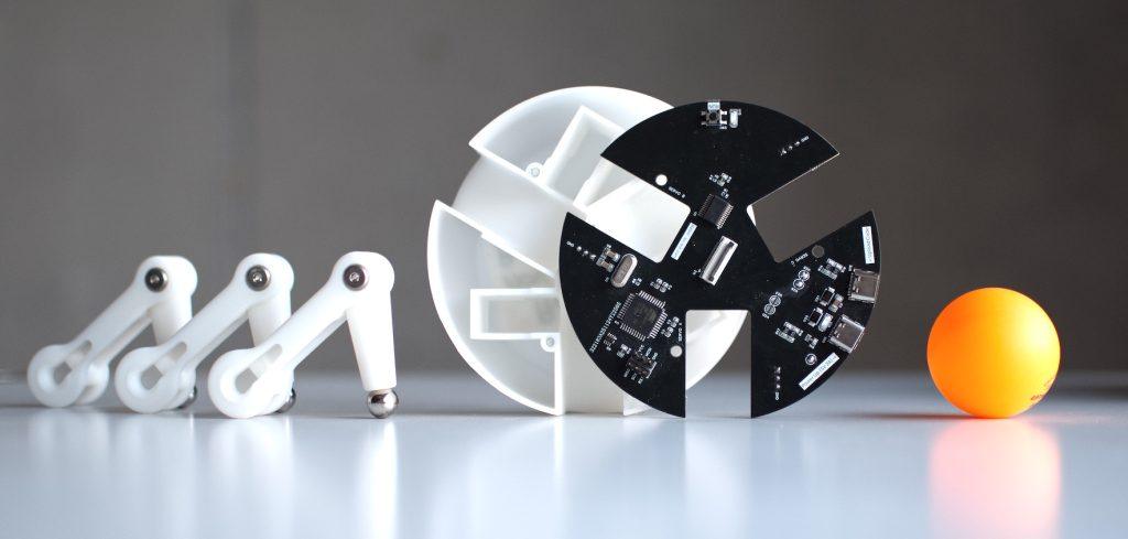 The first PCB houses the main control chips, while the second, positioned just beneath the top plate, tracks the ball’s position using an array of IR LEDs and phototransistors.